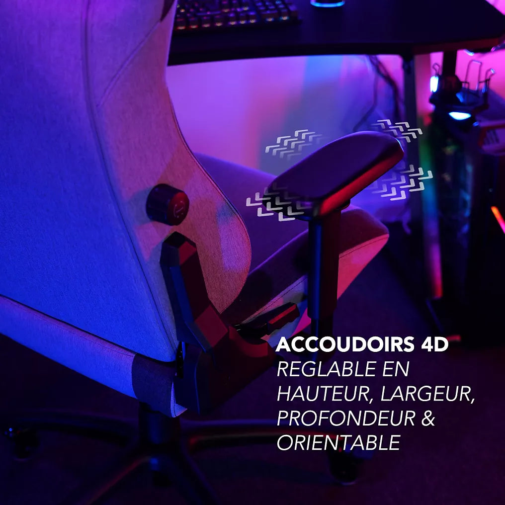 - Avantages : Sa forme baquet et ses roues rollers permettent de jouer sur n'importe quel support de sol sans l'abimer. Les roues roller se verrouillent grâce à des freins afin de permettre de jouer à des jeux de sim racing sans effet de recul.